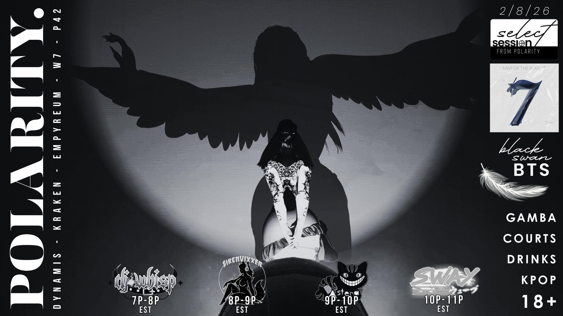 Welcome to Polarity, a place where contrast creates chemistry and every evening is designed to spark connection.Polarity is a celebration where contrasts collide and create something electric. Light and shadow. Elegance and edge. High-energy and heartfelt. Though we may seem like opposites, we’re united by a shared vision, deep passion, and a purpose to move you body and soul.Brought to life by Haz and Elysia Veil, Polarity is more than a venue. It’s a living rhythm: a sanctuary for dreamers, dancers, and those who live for the in-between. Here, K-pop precision meets J-pop flair, blending iconic choreography, futuristic visuals, and infectious hooks into a sonic and visual escape like no other.Every night is a curated experience, where shimmering pop anthems mix with underground remixes and bass-heavy beats. Whether you’re front and center, dancing under neon lights, or tucked away in a velvet booth vibing with your crew, the energy finds you.This isn’t just a party. It’s a pulse. A vibe. A world of its own. Welcome to Polarity.